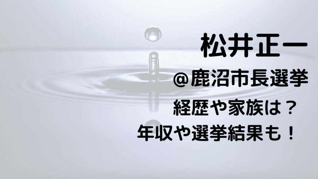 任期満了に伴う鹿沼市長選挙(2024年6月2日告示、同年6月9日投開票)に、栃木県議会議員の松井正一氏が出馬の意向を表明しました。 こちらのページでは、松井正一氏の ・経歴 ・家族 ・年収 ・選挙結果 などについて記事を書いていきます。 松井正一/鹿沼市...