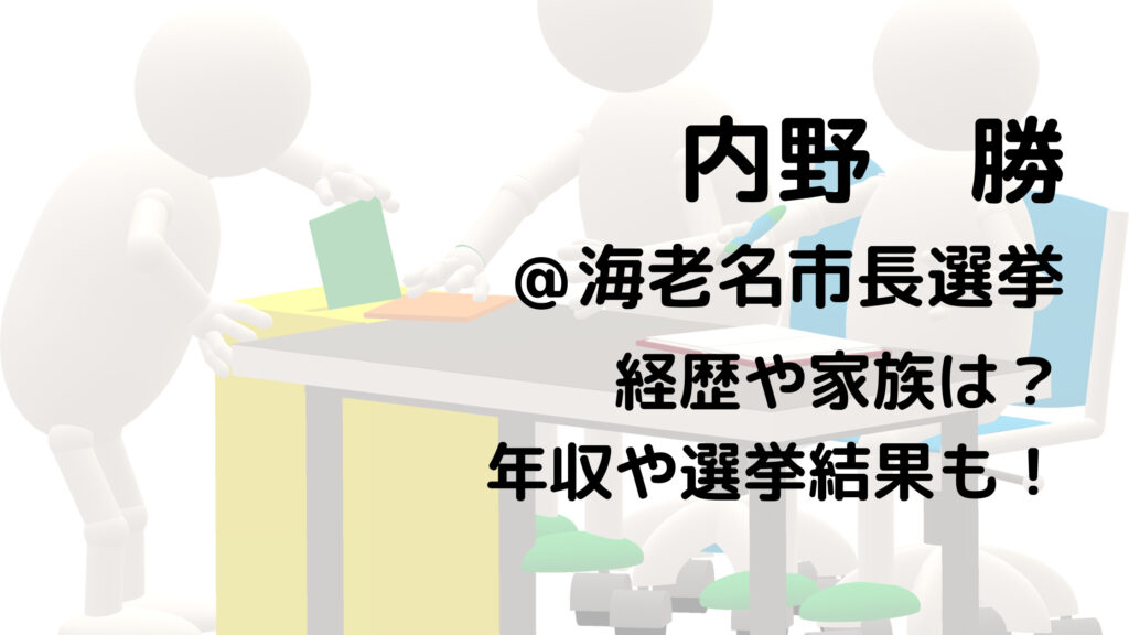 任期満了に伴う神奈川県海老名市長選(2023年11月5日告示、同年11月12日投開票)に、現市長の内野 優氏が出馬の意向を表明しました。 こちらのページでは、内野 優氏の ・経歴 ・家族 ・年収 ・選挙結果 などについて記事を書いていきます。 内野 優氏/海...