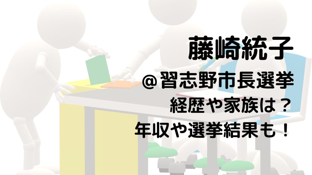 サンプル 今回の記事では2023年4月16日告示、4月23日投開票予定の習志野市長選挙に出馬予定の藤崎統子氏について記事をまとめていきます。 藤崎統子氏の 経歴 家族 年収 選挙結果 などについて記事を書いていきます。 藤崎統子/選挙の経歴は? 藤崎統子氏... -