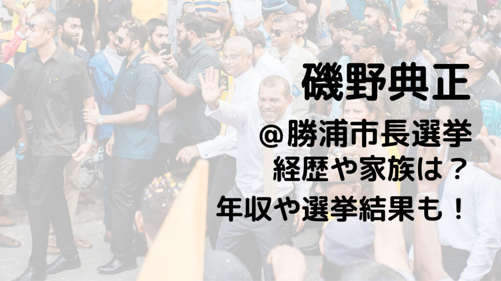 市長の死去に伴う勝浦市長選挙(2022年8月21日告示、8月28日投開票)に磯野典正氏が出馬する意向を表明されましたので,磯野氏に関する情報をまとめています。 こちらのページでは,磯野氏の ・経歴 ・家族 ・年収 ・公約 などについて調べてみました。 磯野... -