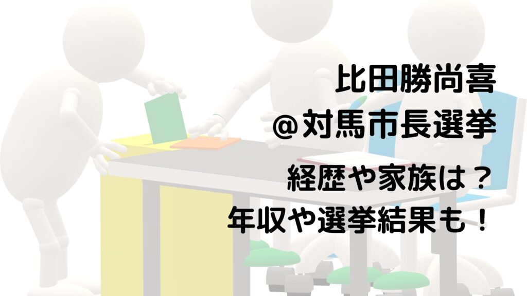 2024年2月25日告示、同年3月3日に投票が実施される対馬市長選挙に、比田勝尚喜氏が出馬の意向を表明しました。 こちらのページでは、比田勝尚喜氏の ・経歴 ・家族 ・年収 ・選挙結果 などについて記事を書いていきます。 比田勝尚喜/対馬市長選挙の経歴は... -