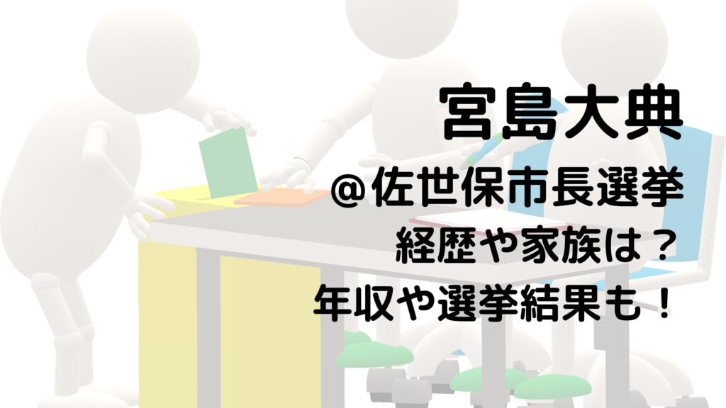 任期満了に伴う佐世保市長選挙(2023年4月16日告示、4月23日投開票)において宮島大典氏が出馬の意向を表明しました。 こちらのページでは、宮島大典氏の 経歴 家族 年収 選挙結果 などについて記事を書いていきます。 宮島大典/佐世保市長選挙の経歴は? 名... -