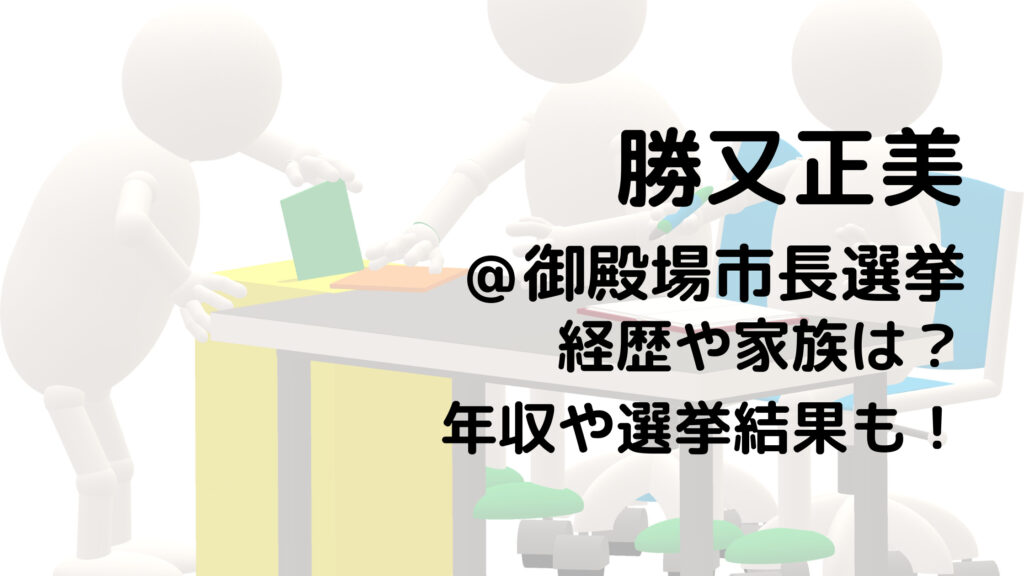 前職である若林市長の辞職に伴う御殿場市長選挙(2021年9月26日告示、10月3日投開票)に、勝又正美副市長が無所属で立候補する意思を表明されましたので勝又氏に関する情報をまとめています。 勝又正美氏の ・経歴 ・家族 ・年収 ・選挙結果 などについて記... -
