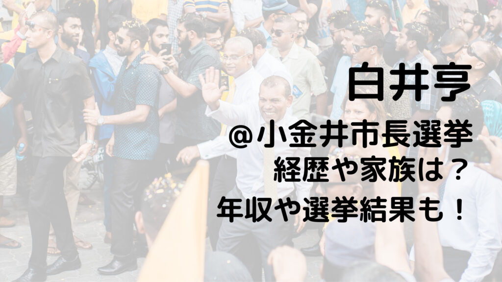 市長の辞職に伴う東京都小金井市長選挙(2022年11月20日告示、11月27日投開票)に新人の白井亨氏が当選を目指して立候補する意向を表明されていますので白井氏に関する情報をまとめています。 白井亨氏の ・経歴 ・学歴 ・ご家族 ・年収 ・実績や評判 ・公約 ... -